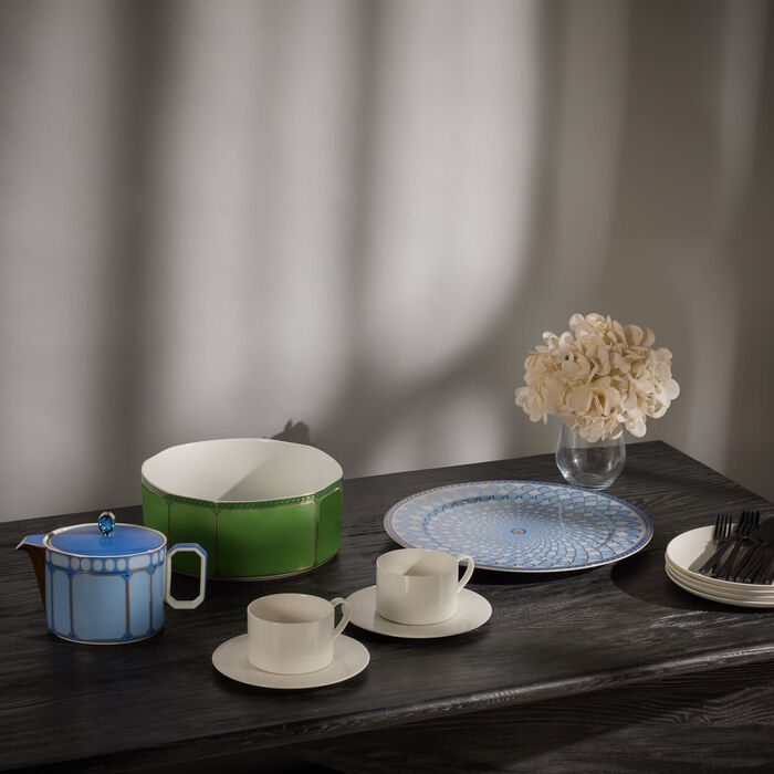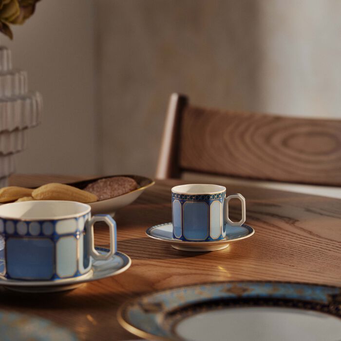 فنجان الشاي سيغنوم آزور مع صحنه أزرق