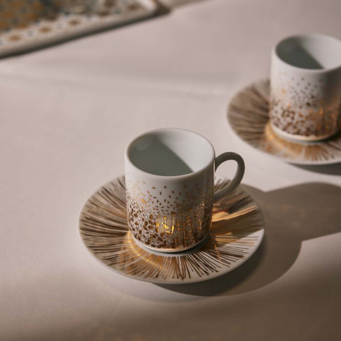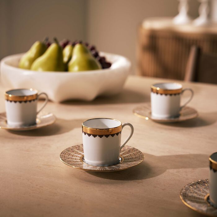 صلصال طقم تمرة بالتعاون مع رزان العزوني المؤلف من 6 فناجين للقهوة باللون الذهبي
