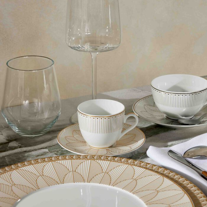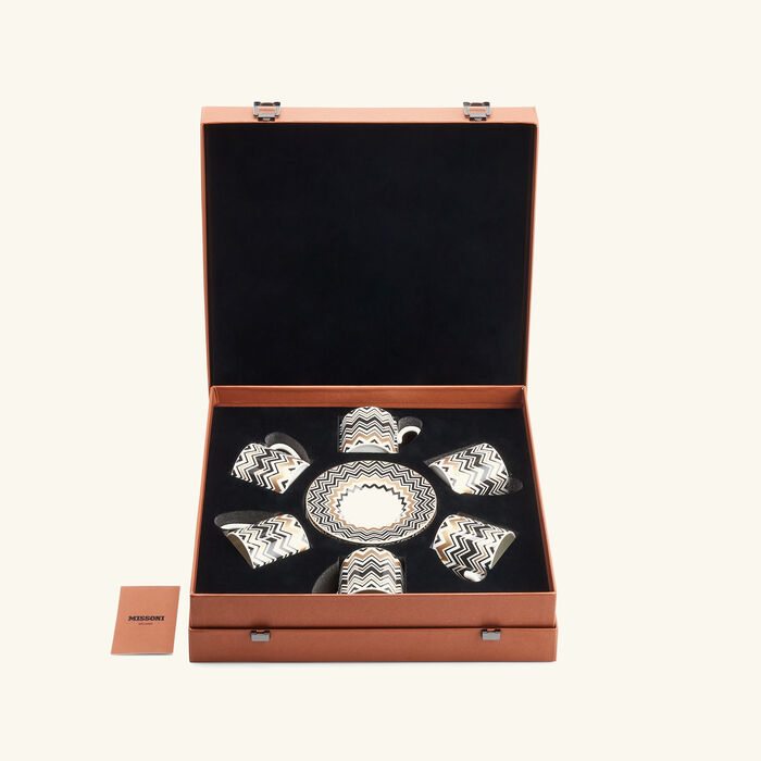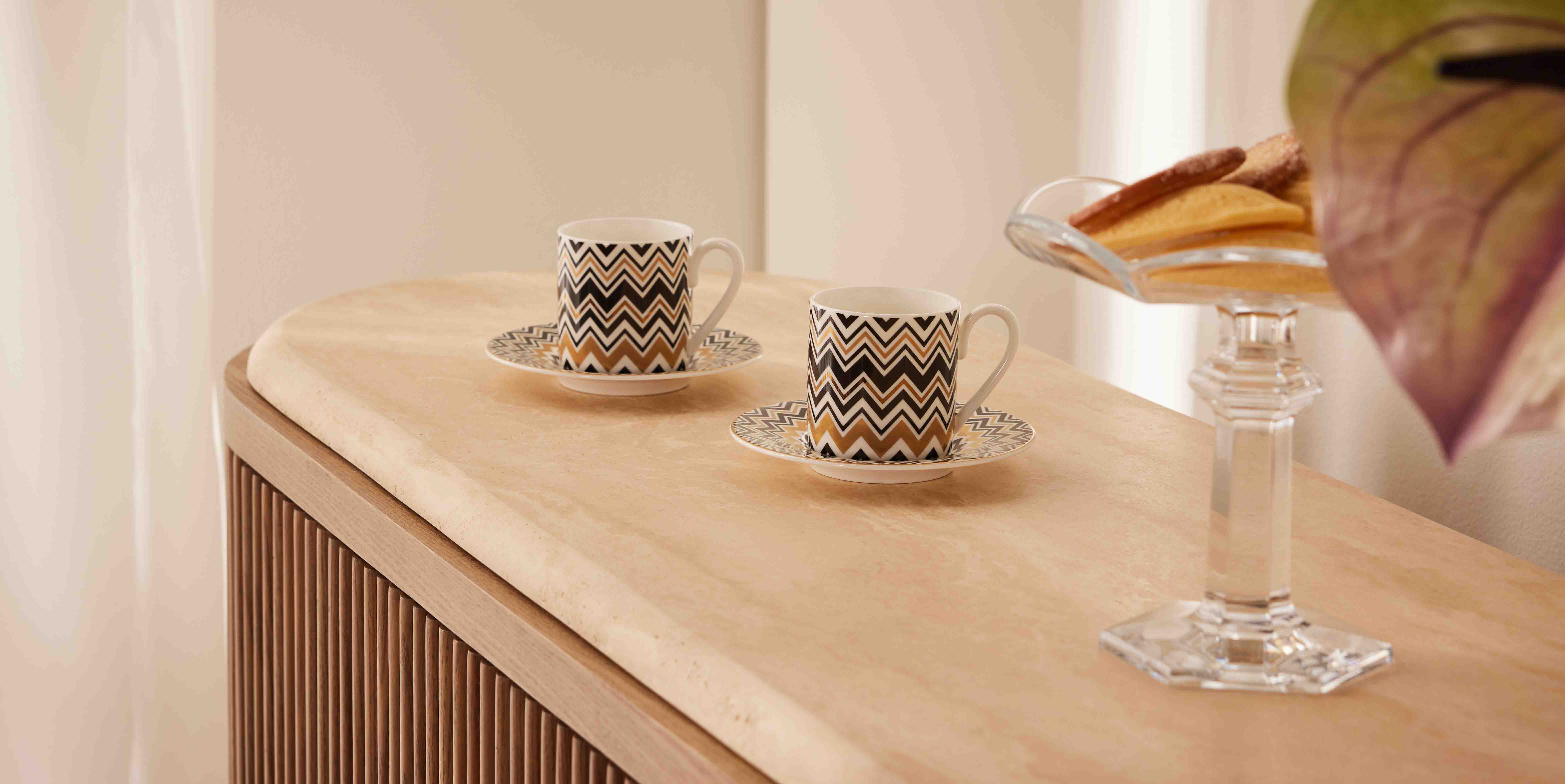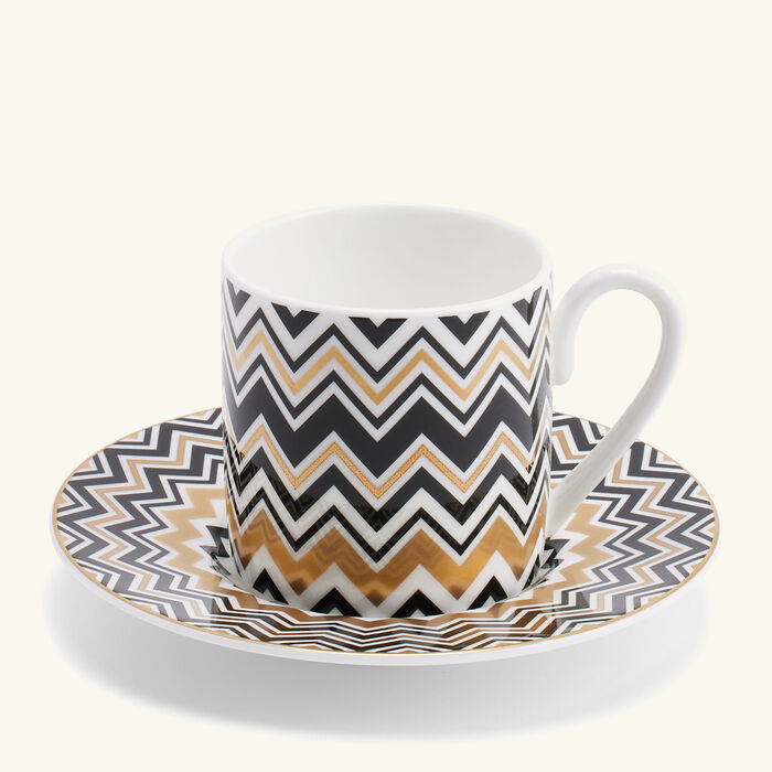 ميسوني هوم طقم زيك زاك جاريس المؤلف من 6 فناجين للقهوة مع صحونها باللون الذهبي
