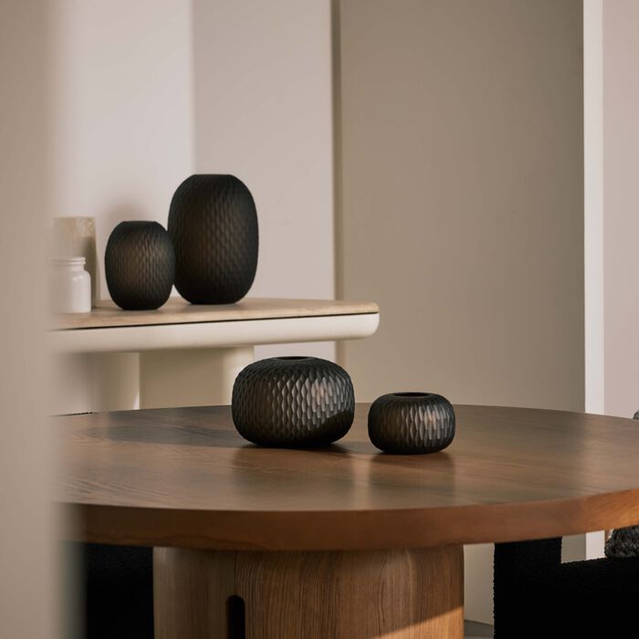 روكل مزهرية كراكاتيت مستديرة متوسطة الحجم من الكريستال الشفاف