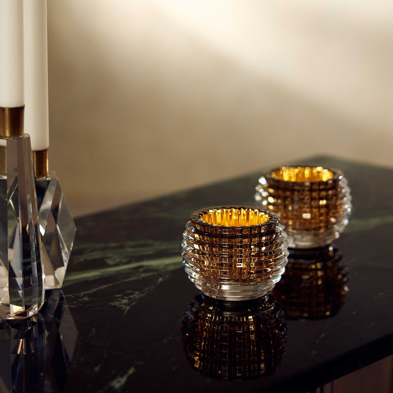 باكارا طقم آي مؤلف من كوبين للشموع باللون الذهبي
