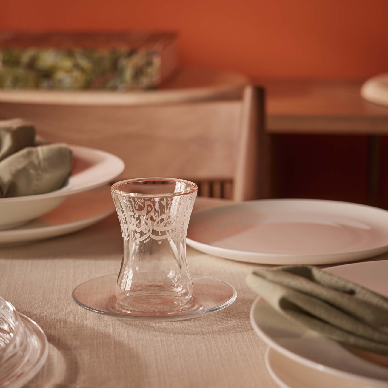 طقم "ثلث" المؤلف من 6 فناجين للشاي مع صحونها بتصميم شفاف