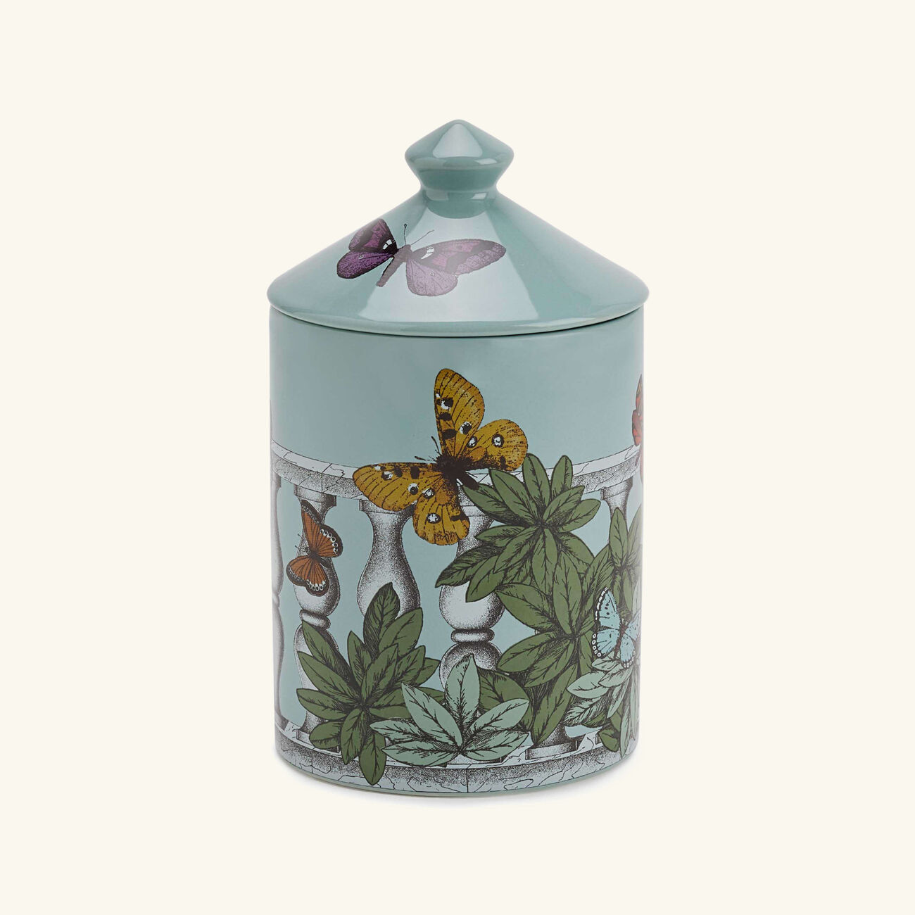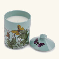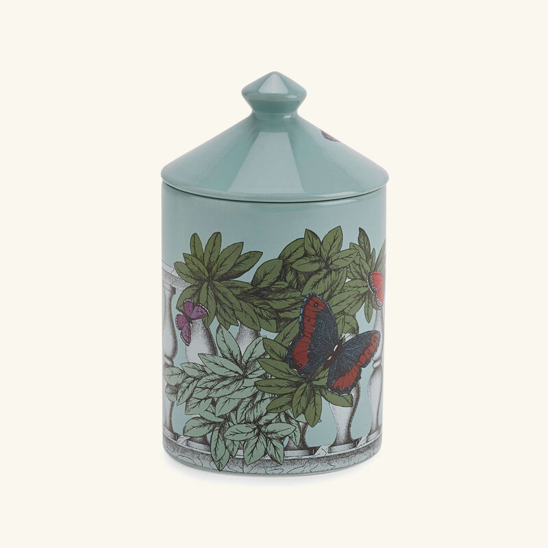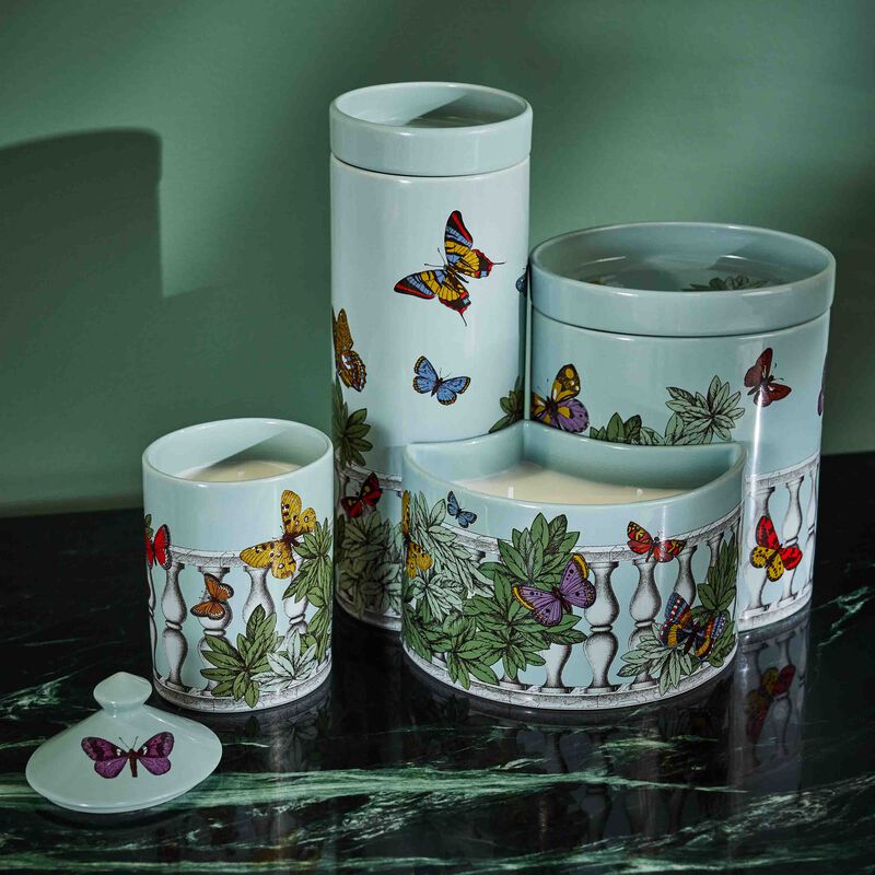 تتسم هذه الشمعة بتصميم رائع يعكس مضمون اسمها الإيطالي، حيث تأتي ضمن قالب خزفي صغير بلون أزرق فاتح مزيّن بزخارف نباتية خضراء جميلة وفراشات متنوّعة الألوان، حيث يكفي فتح غطائها الجميل لتنثر خلطتها العطرية الغنية بروائح الراوند وأوراق الطماطم والكشمش الأسود وإبرة الراعي والجلبانوم، فتغمر الأجواء بعبير ينسجم مع بصيص نورها الهادئ وتبعث على الراحة والاسترخاء بعد يوم طويل.