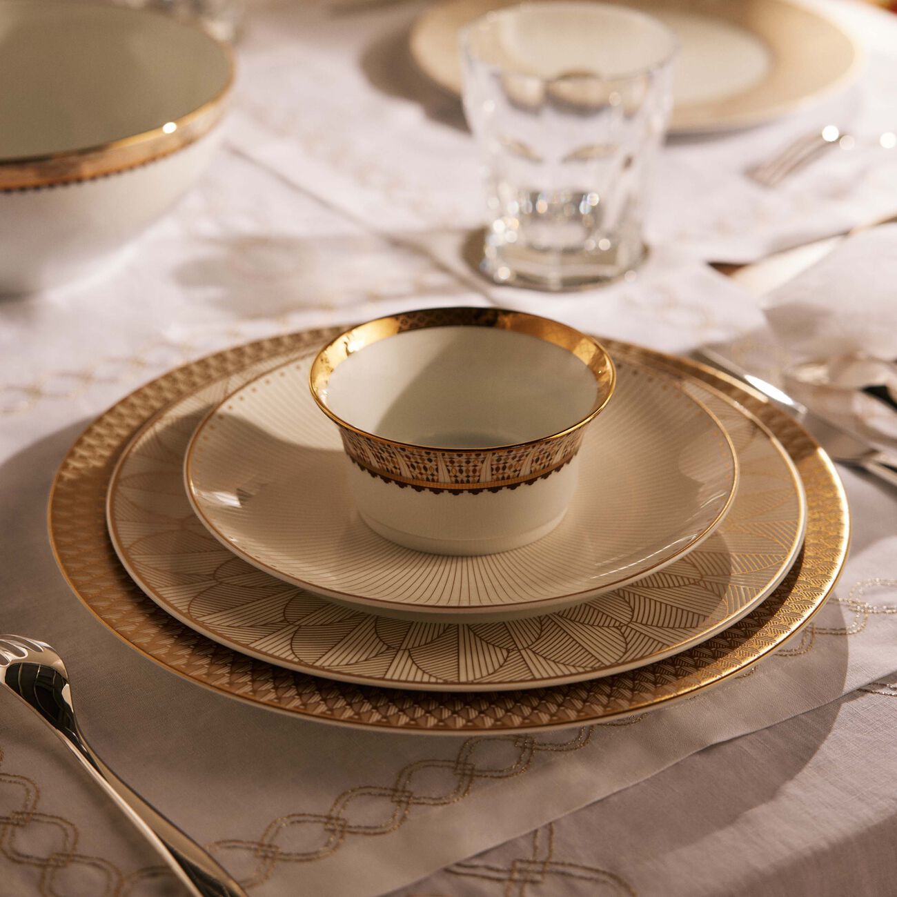 امنح مناسباتك العامرة نكهة مختلفة مع هذا الوعاء الذي تطرحه هافيلاند في تصميم أنيق من البورسلين الفاخر مع تزيين حوافه بلمسات ذهبية أخاذة، إلى جانب الزخارف الذهبية التي تزيّن قاعدته البيضاء الكلاسيكية، ليكون خيارًا نموذجيًا لتقديم مختلف أصناف الحلويات والفاكهة أو المقبلات الصغيرة بأسلوب يضفي رونقًا ملكيًا على شتى المناسبات، من اللقاءات العفوية وحتى التجمعات الرسمية، ما يجعله انعكاسًا لذوقك الرفيع وحرصك على إضفاء طابع جمالي خاص على أي مناسبة.