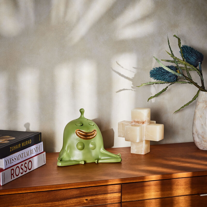 تمتاز قاعدة هاس ميديتيتور لإشعال البخور بتصميمها الرائع المصنوع من البورسلين الفاخر ذي اللون الأخضر الهادئ مع فتحة علوية ذهبية اللون وغطاء أبيض. إنها خيار رائع لإضفاء لمسة خاصّة على أي ديكور.