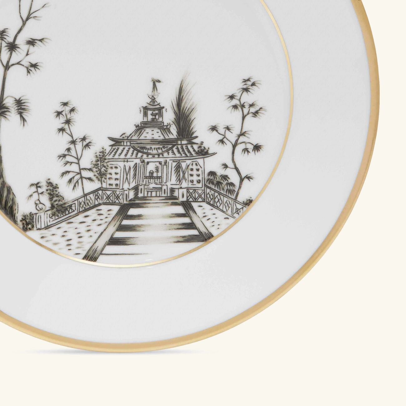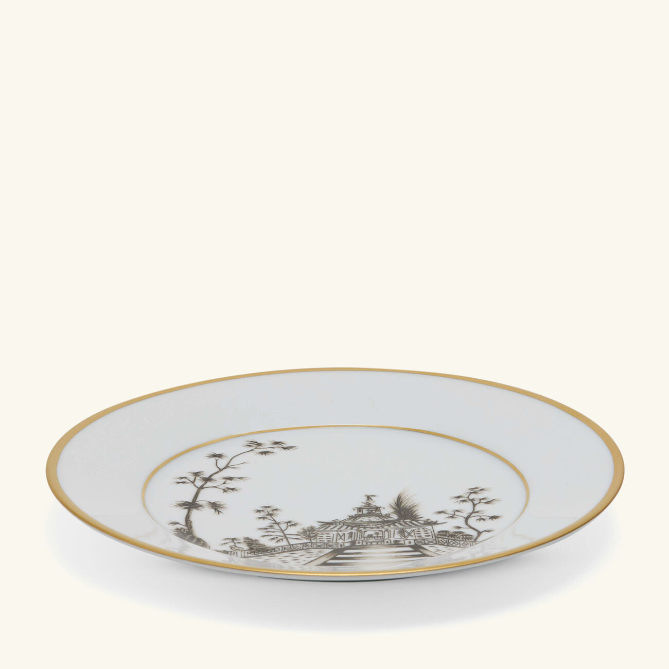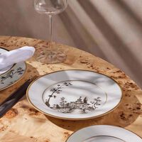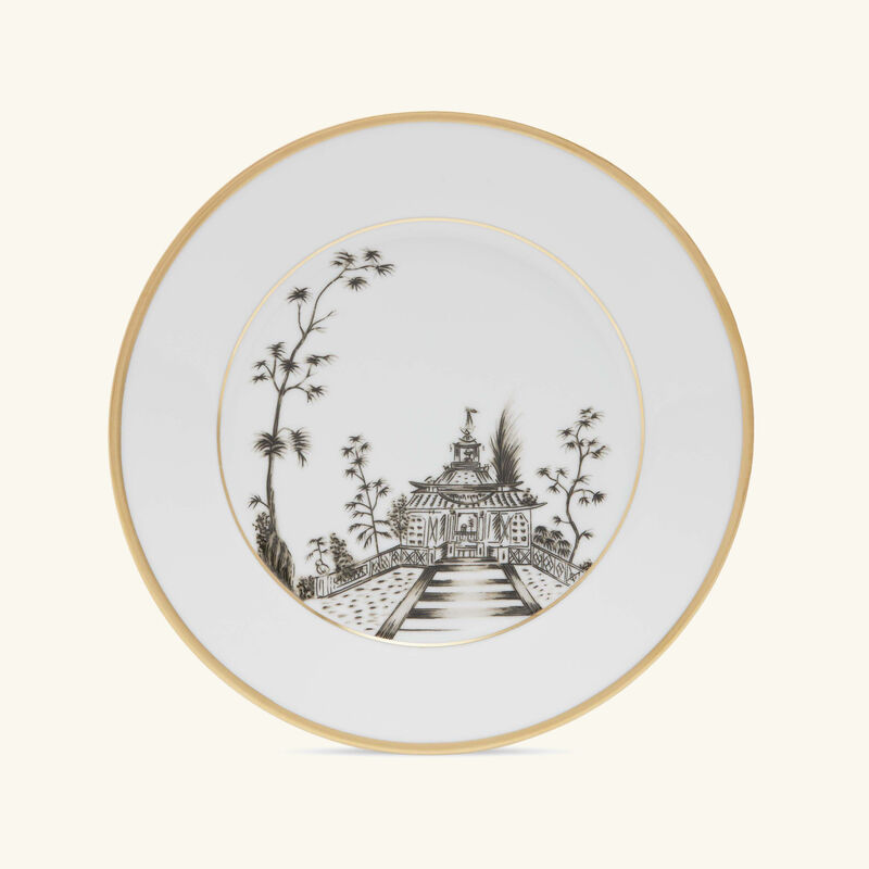 يتألق هذا الطبق بتصميم متقن الصنع من البورسلين عالي الجودة المزيّن بنقش ياباني الطابع على شكل قصور وحدائق باللون البني المائل للذهبي، مع حواف ذهبية تنبض بالفخامة، ليكون خيارًا رائعًا لتقديم الحلويات بكل أناقة في المناسبات الخاصة.