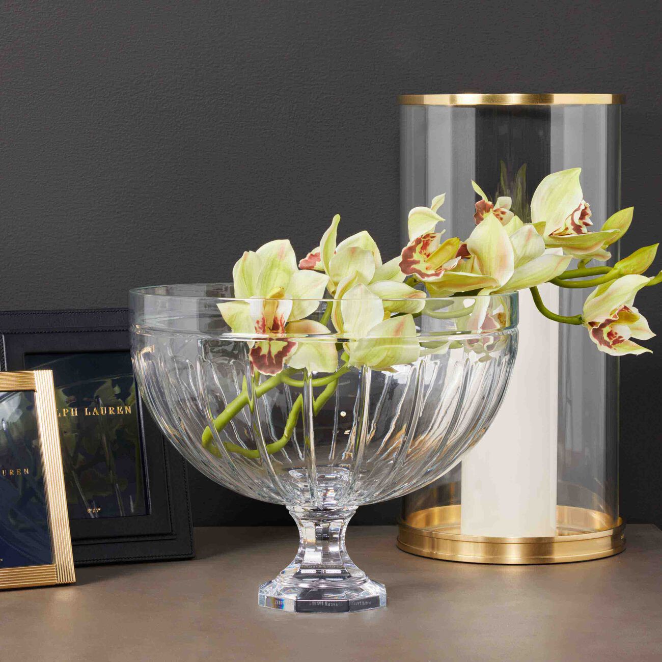 يزهو هذا الوعاء ببصمة رالف لورين الانسيابية الأصيلة، حيث يأتي بتصميم كريستالي نقي يتزيّن بخطوط محفورة يدويًا وبنقوش ولمسات لافتة، ما يجعله خيارًا نموذجيًا لتزيين الموائد ومناضد مداخل المنازل والرفوف في مختلف أجزاء المنزل.