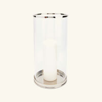 يتمتع هذا الشمعدان من رالف لورين بتصميم عصري ينسجم مع مختلف الديكورات ويحتضن الشمعة ضمن قالب زجاجي متين أسطواني الشكل ليضمن إمدادها بالكمية الكافية من الهواء دون إطفاء فتيلها، ويتزيّن بلمسات فضية اللون تلفت الأنظار بجمالها وتنسجم مع الزجاج بشكل رائع بفضل تصميمها المتقن لترسم مشهدًا يسرّ الأبصار ويضفي لمسة راقية على أي ديكور.