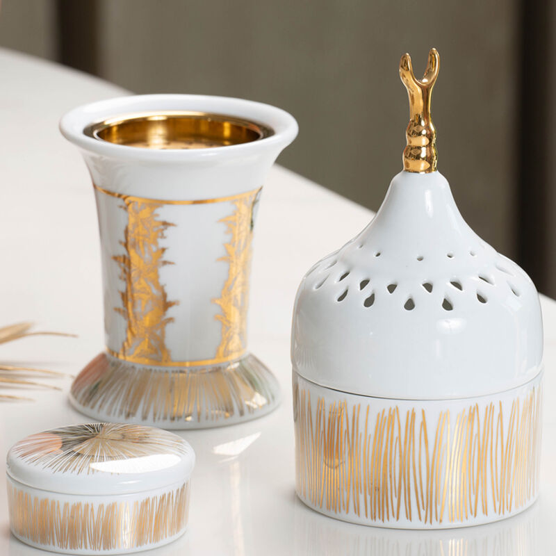 طقم مؤلف من مبخرة تمرة بالتعاون مع رزان العزوني مع هلال وعلبة للحلى والمجوهرات
