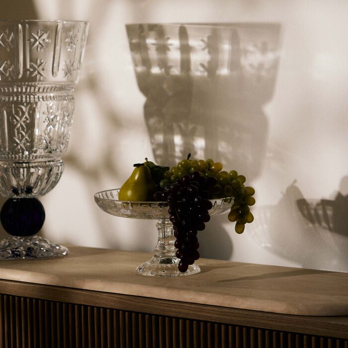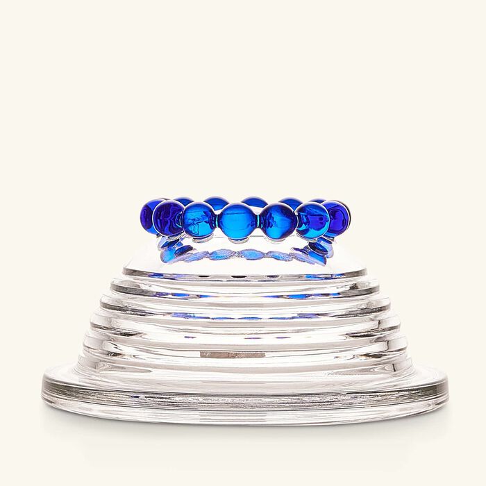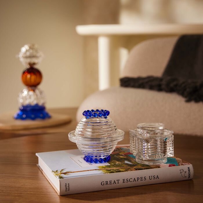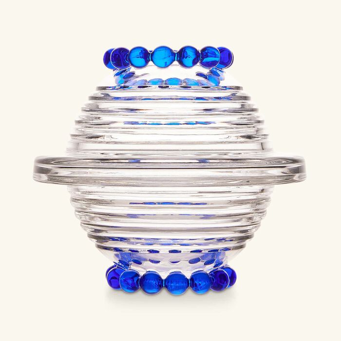 علبة حلوى زرقاء بقاعدة مرتفعة وغطاء